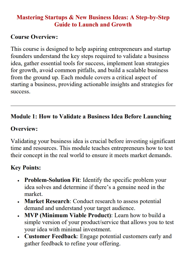 Mastering Startups & New Business Ideas: A Step-by-Step Guide to Launch and Growth