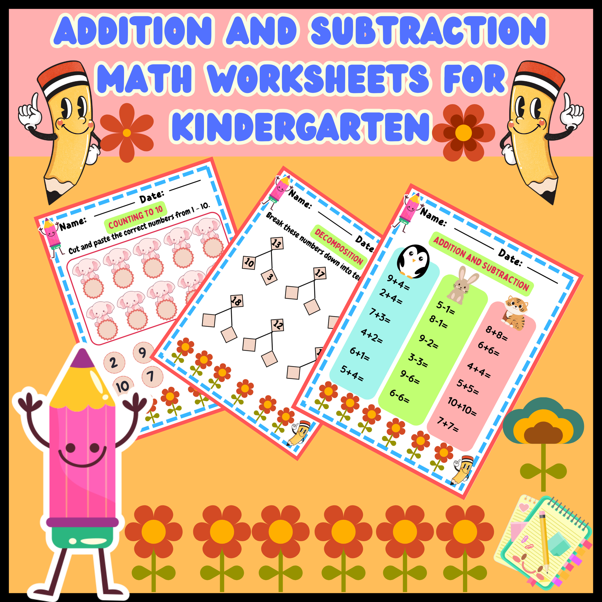 Addition and Subtraction Math worksheets for kindergarten