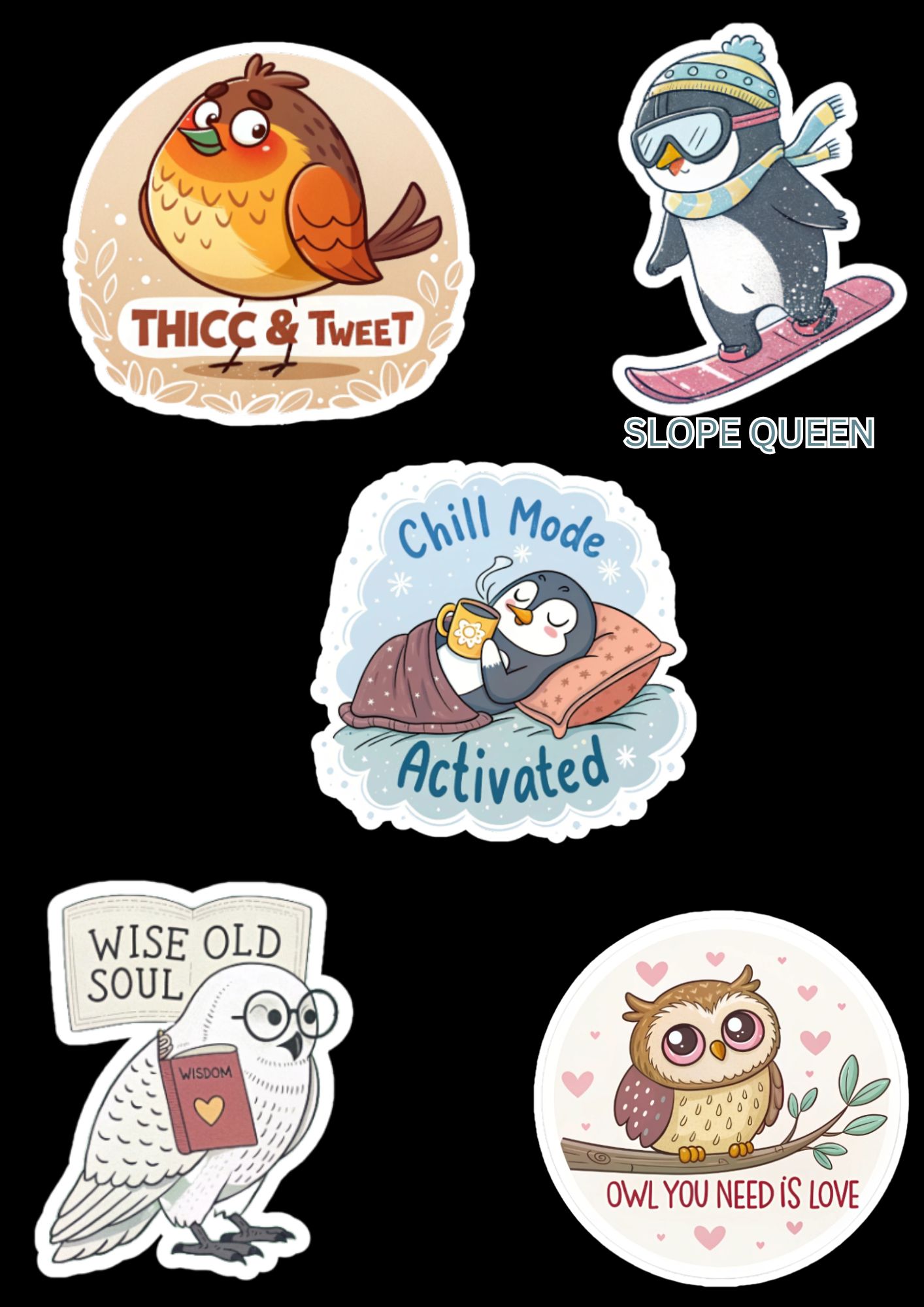 Cute Bird Stickers – Adorable Kawaii Bird Collection (Digital Download)