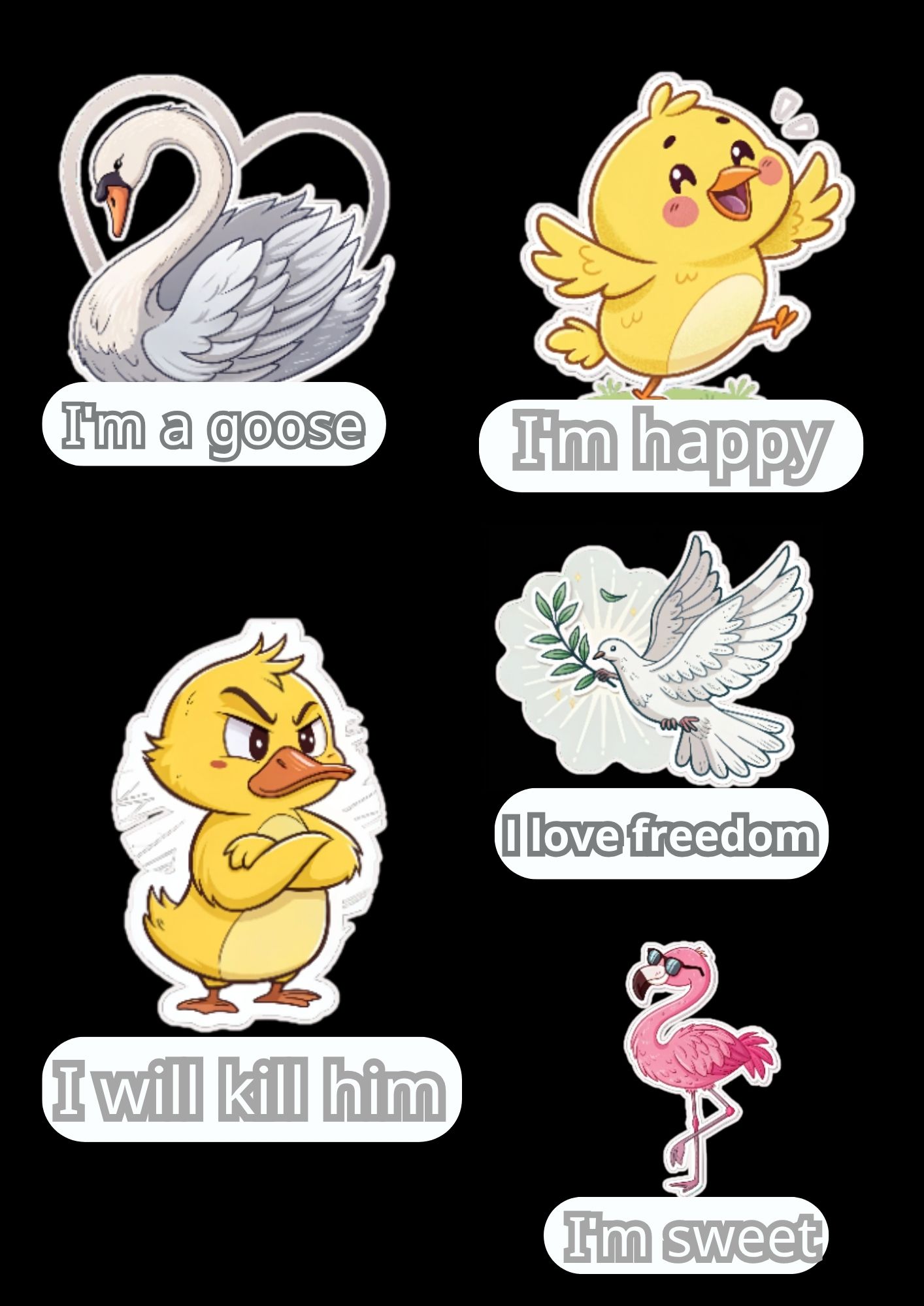 Cute Bird Sticker Pack – 10 Adorable Cartoon Bird Designs (Digital Download)