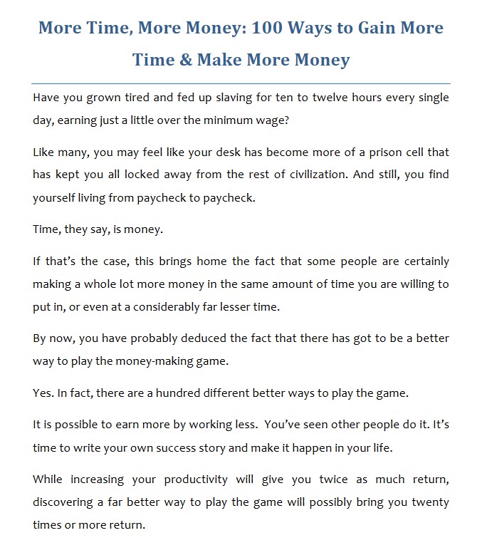 More Time, More Money