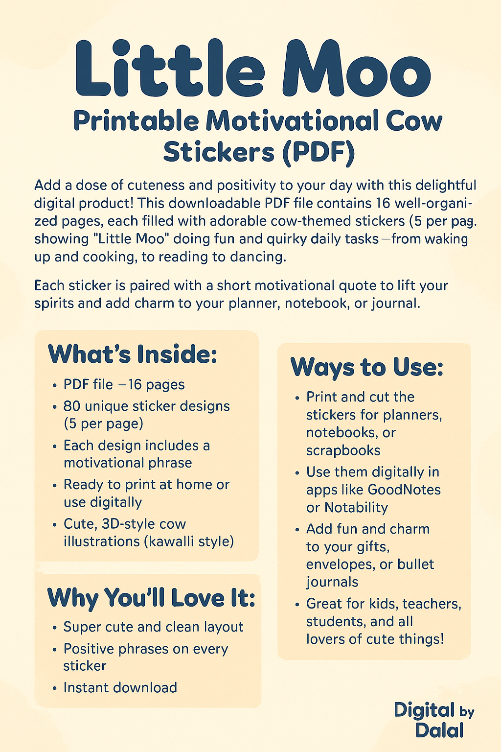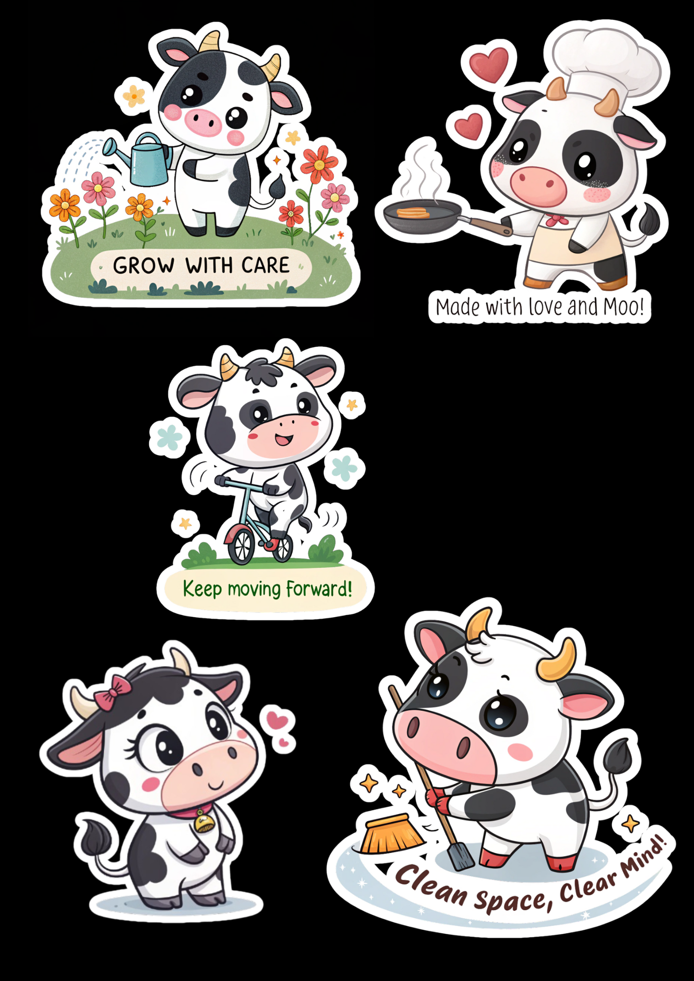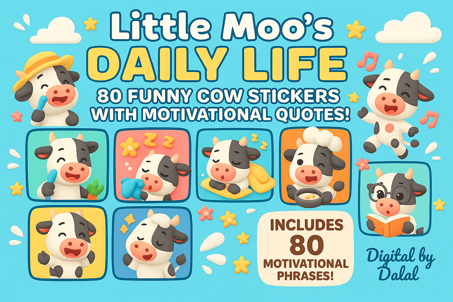 ✅ Little Moo – 80 Funny Cow Stickers with Motivational Quotes
