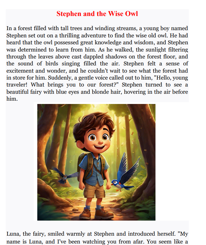 Preview of Stephen and the Wise Owl
