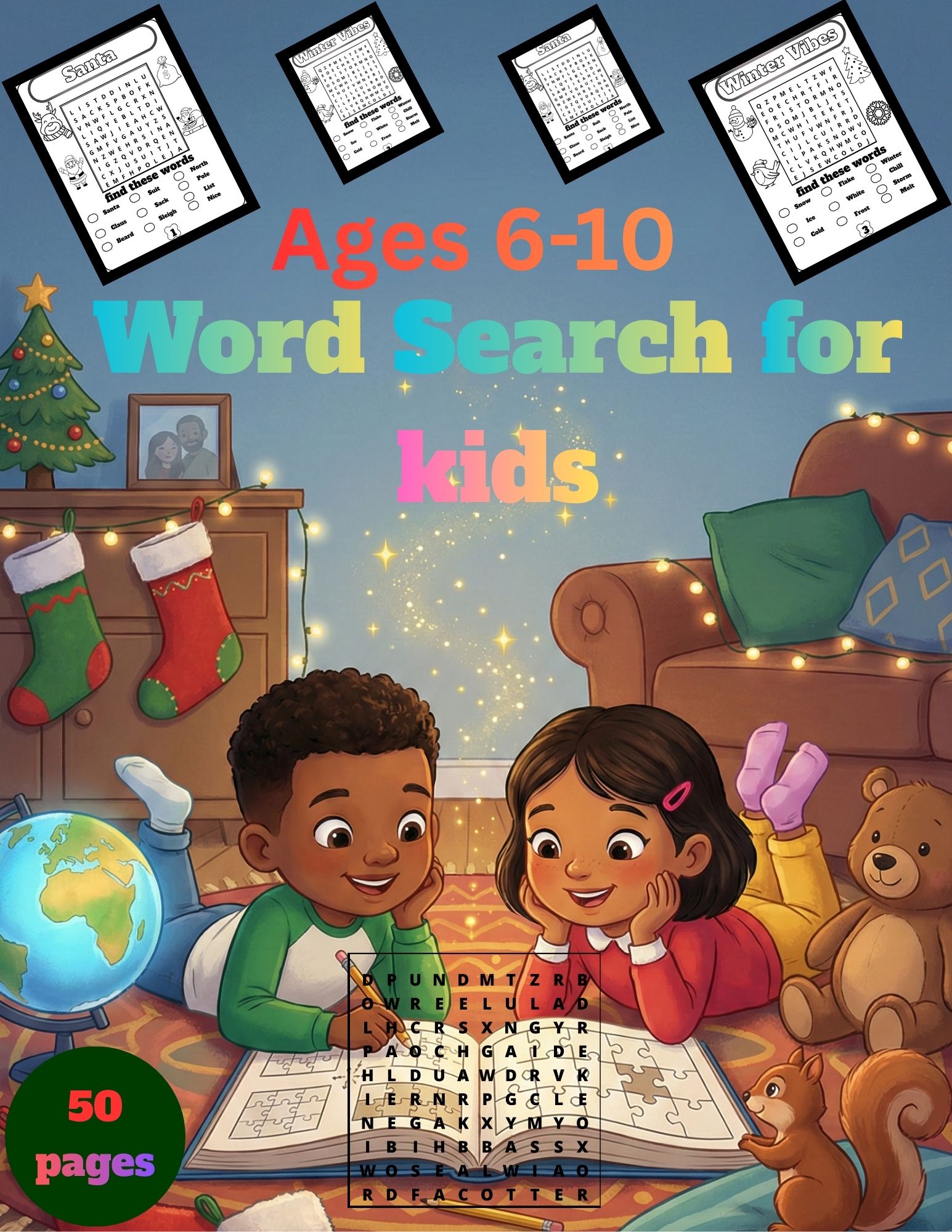 Word Search for Kids: The Giant 50-Page Collection | Christmas, Winter, School, & Animals | Educational Puzzle Book for Ages 6-10